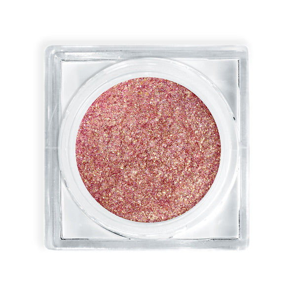A mixture of highly pigmented pink mica and gold flake.  Lit Metals can be applied wet with our Glitter Base (for a metal effect) or applied dry over primer (to create a sparkle shadow look). Great for adding a POP of sparkle/shine over lipstick/gloss or using a powder brush to create highlight on cheeks, shoulders or chest.
